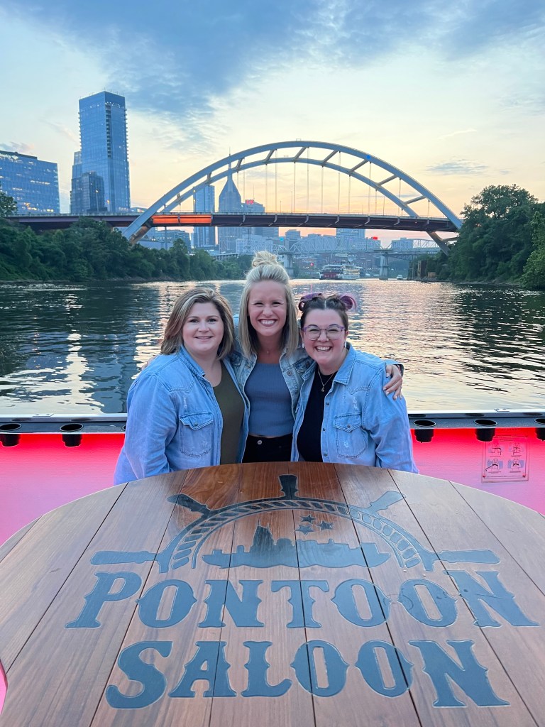 A hidden gem on our trip was the Pontoon Saloon. This was recommended to us by our Uber driver, Adam. (Shout out, Adam Laverdiere, he’s a musician who has great tunes on Apple Music so you should probably check his music out) This was a two hour pontoon cruise at sunset and we had SO MUCH FUN. This is a must do when in Nashville. It was such a chill way to spend our last night there. After the ride, we hustled to Ole Smoky Distillery, where Bailey Zimmerman was playing. This was just a short walk from our Airbnb. If you haven’t seen him live, add him to your concert list. This guy can sing and perform. My country music loving heart was so happy we did not miss him. After our free concert, we ended our last night having margaritas at Pushing Daisies. An underground speak easy with divine beverages.