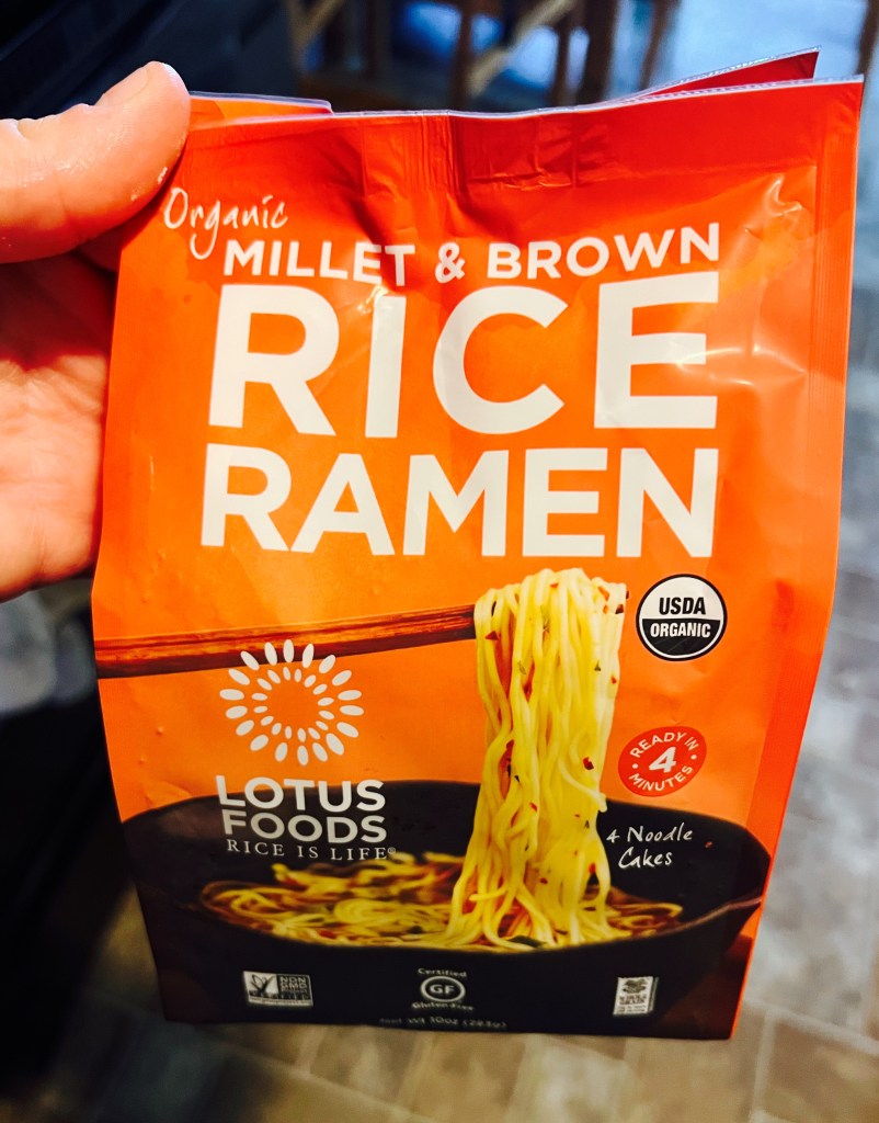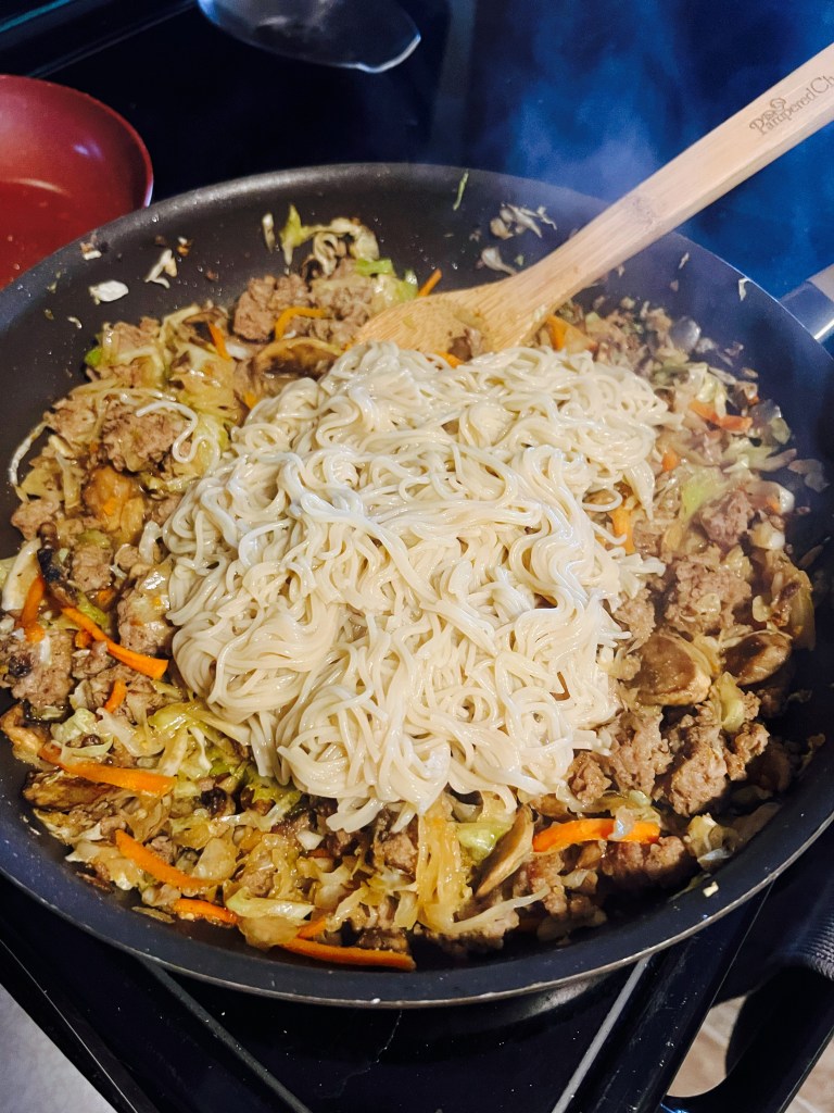 3 noodles cakes of Rice Ramen Noodles (You could use about half of a box of Angel hair pasta here too)