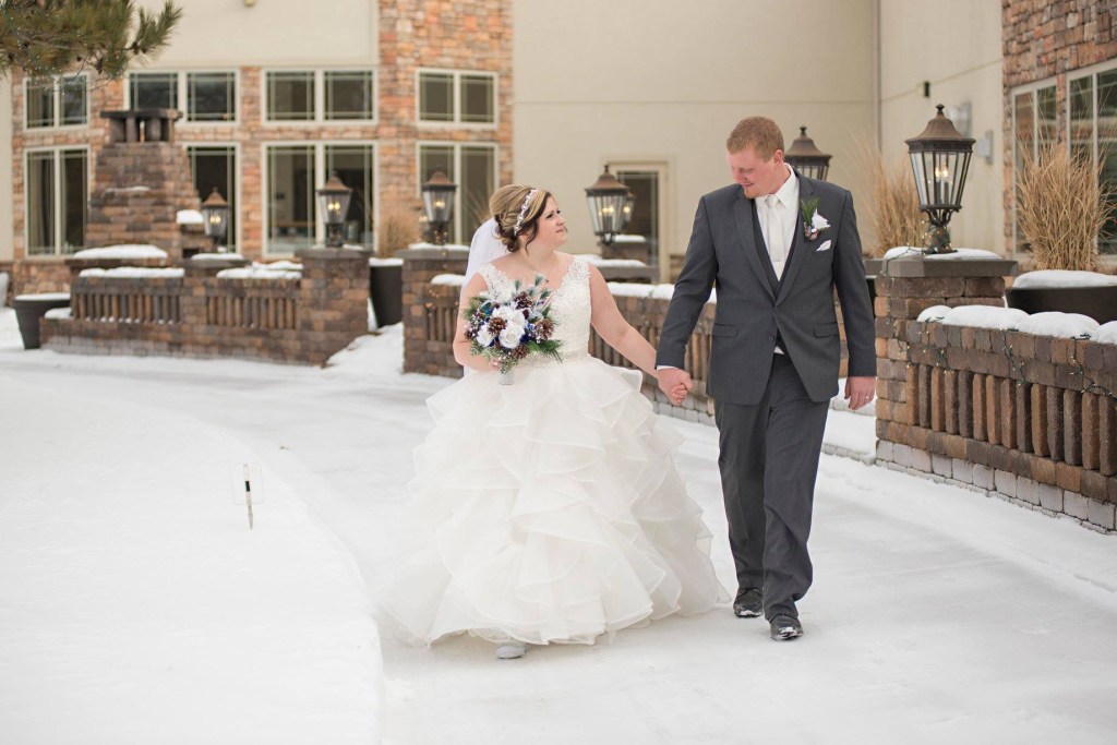My hubby and I first met when I moved from my hometown to lakes area. His cousin introduced us and we instantly hit it off. We had been together for a few years before Devon proposed on top of a local mountain over looking our favorite fishing lake. We got married in January of 2018 because winter is our favorite.